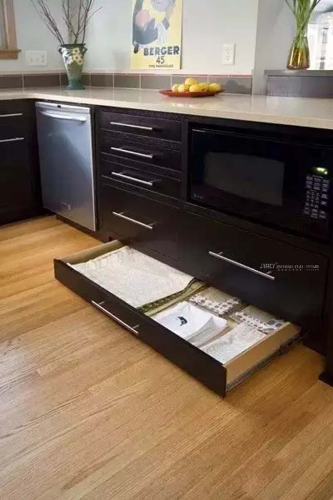 储物柜和地面之间的缝隙也可以充分利用起来,不留任何空白。