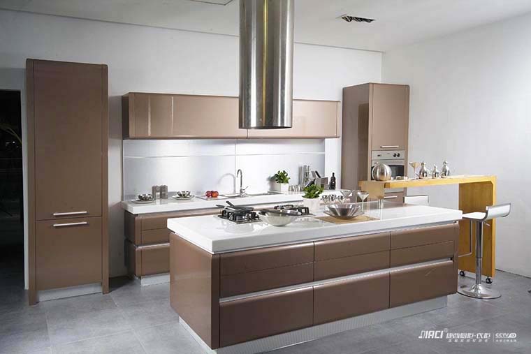 烤漆橱柜门板可分亮光、亚光及金属烤漆三种。烤漆板是木工材料的一种。它是以中密度板为基材,表面经过六至九次打磨(不同厂家次数不同,次数越多工艺要求越高,成本也就越高)、上底漆、烘干、抛光(三底、二面、一光)高温烤制而成。
